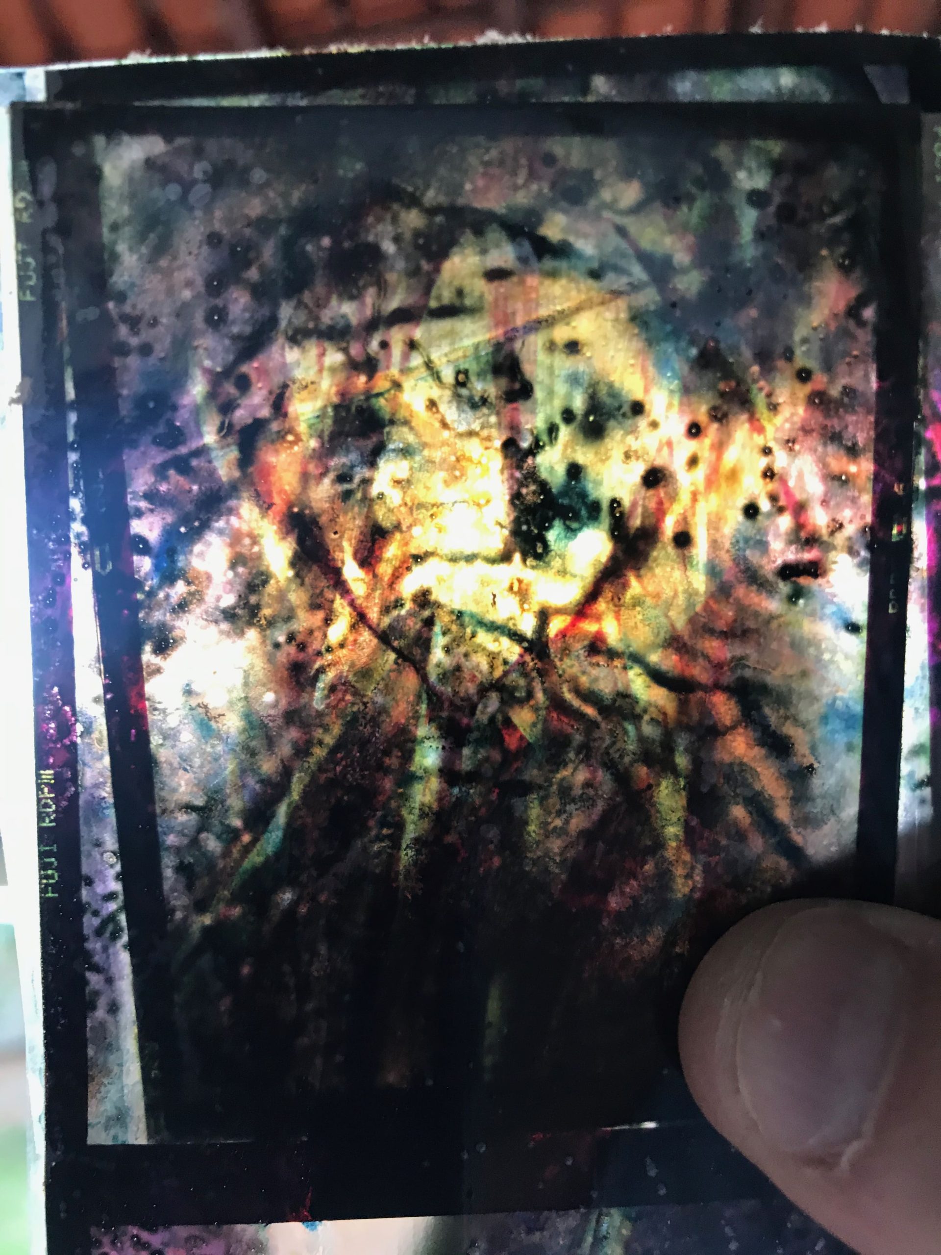 Nós surgimos no encontro do filme de película com a água. “Contaminado”, revelou uma nova gravação analógica que se colocou em lugar da memória antiga como imagem futura.