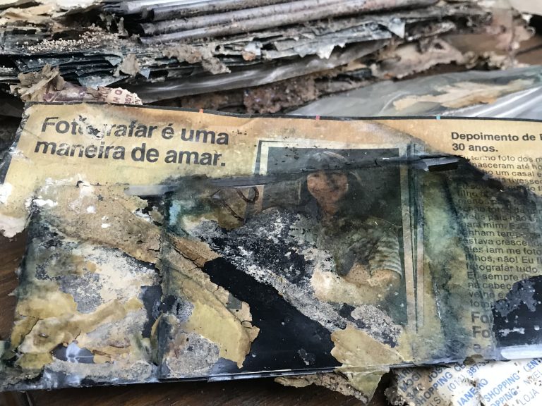 Foi em uma das enchentes de São Paulo que o conceito de Contaminado apareceu. Alguns positivos que estavam guardados, memórias de muitos anos, foi corroído por uma inundação que infiltrou o ateliê.